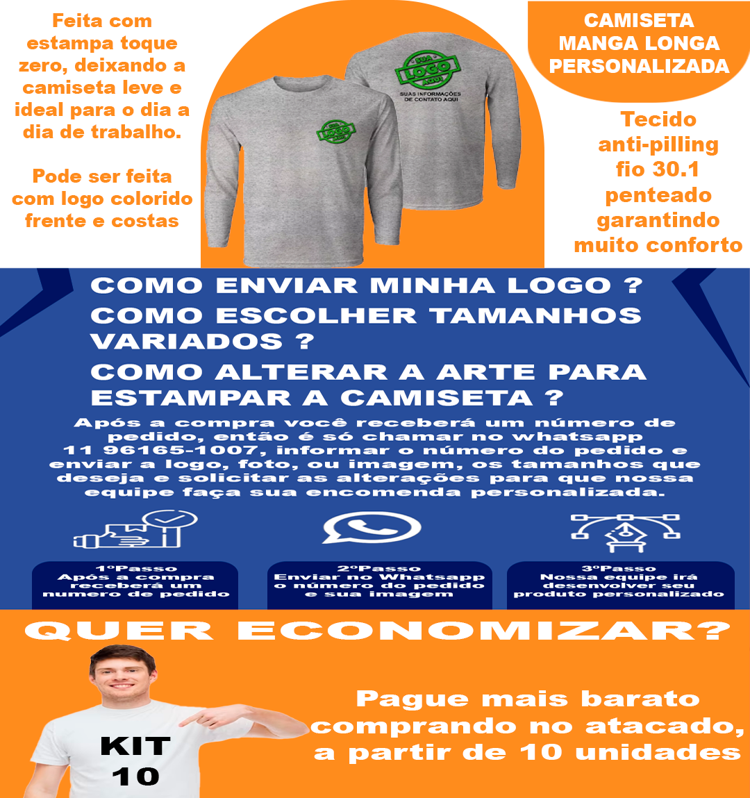 Camiseta Manga Longa Logo Frente E Costas Uniforme Empresa