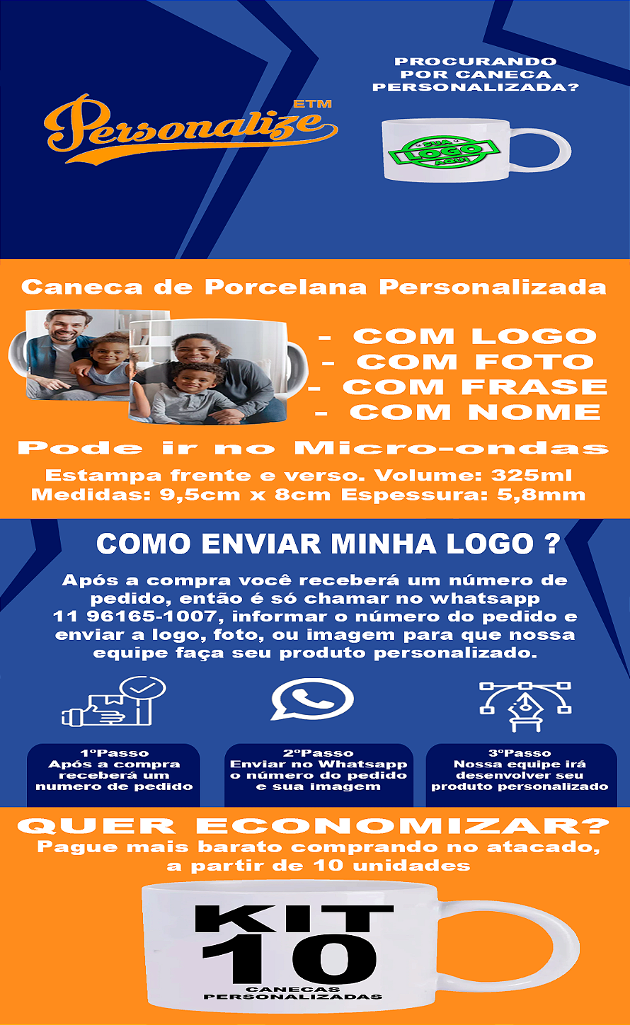 Caneca porcelana branca personalizada com logo ou foto
