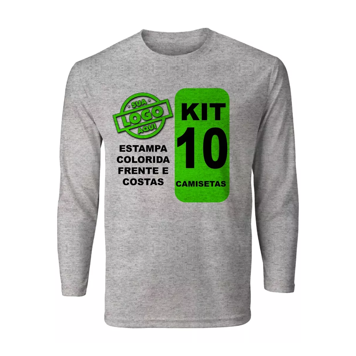 Kit 10 Camiseta Manga Longa Logo Frente E Costas Uniforme Empresa
